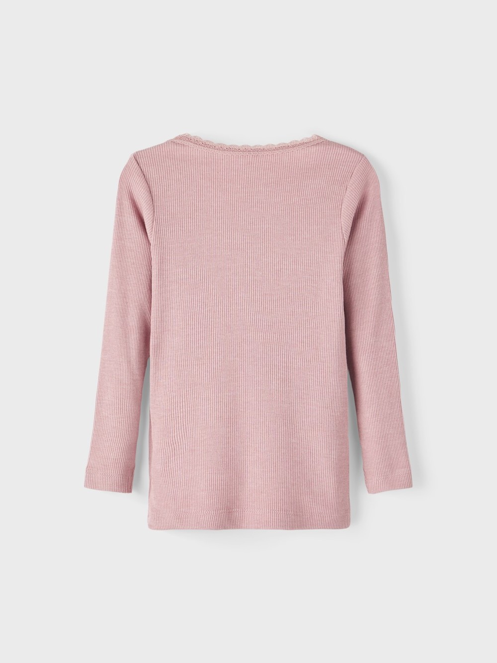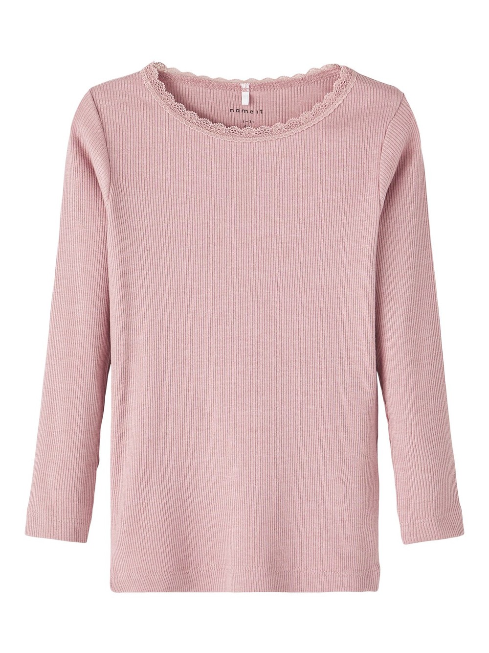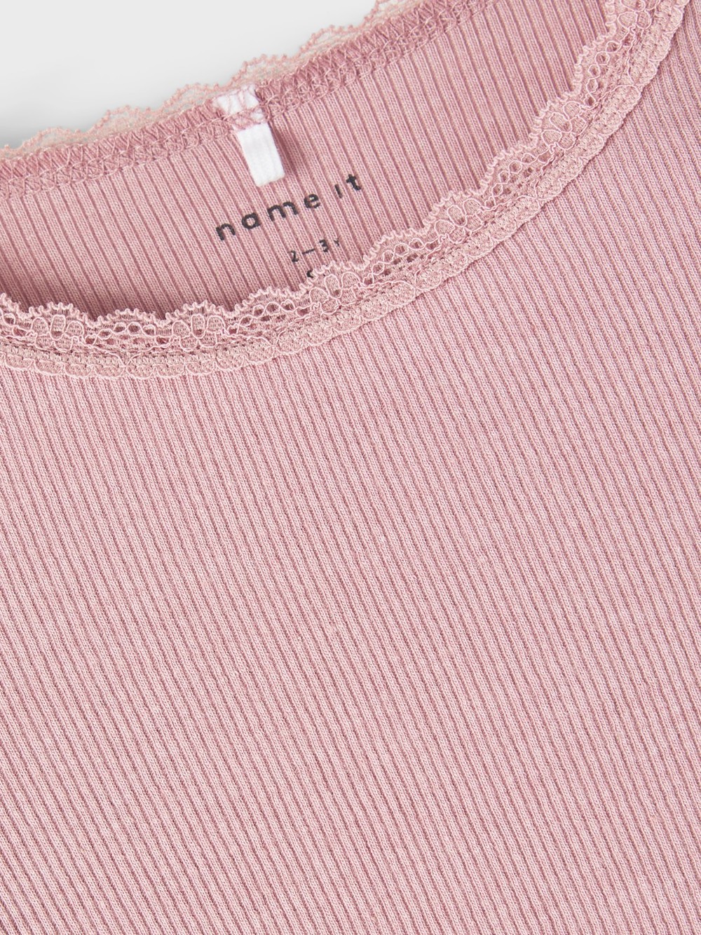 Fin topp med smal ribb. Fin detalj med liten blonde øverst rundt halsen.