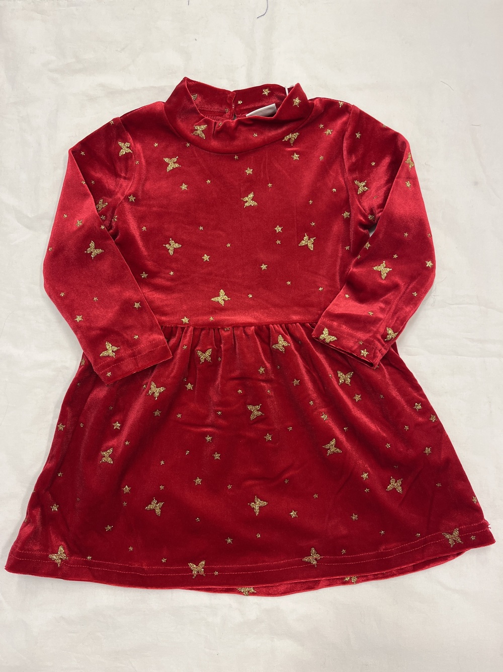 Kjole i velour, med sommerfugler og stjerner i glitter. Knepping øverst i ryggen bak.