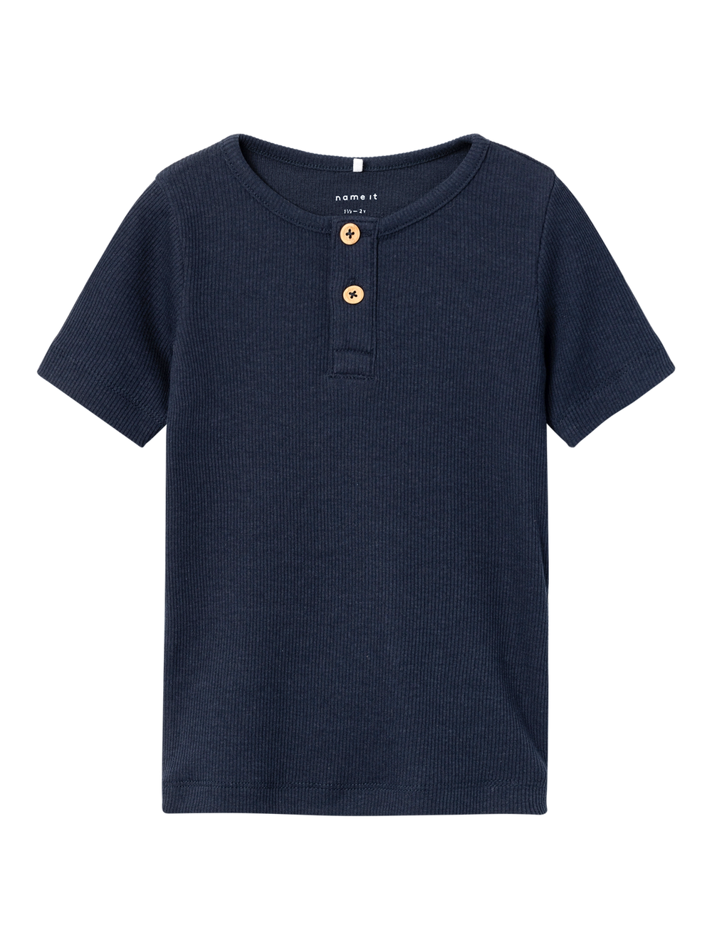 T-skjorte i fin ribb-kvalitet. Bestefarsknepping i front.