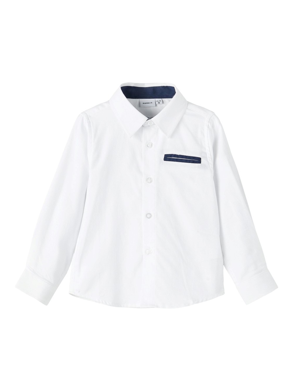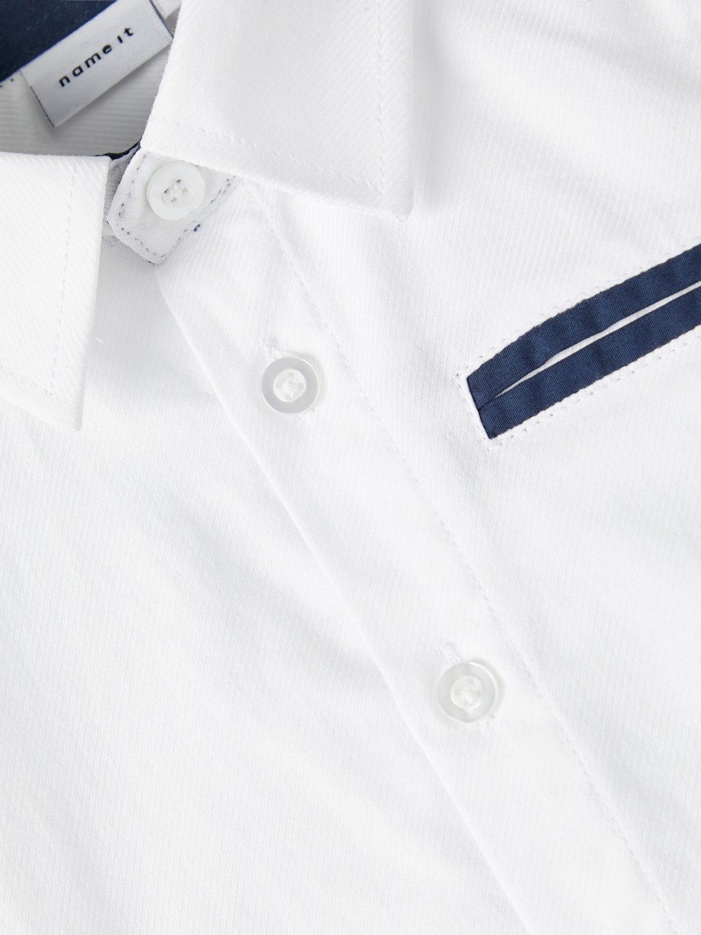 Enkel hvitskjorte med kontrast i kragen og ved brystlomme. Fin struktur i stoffet.