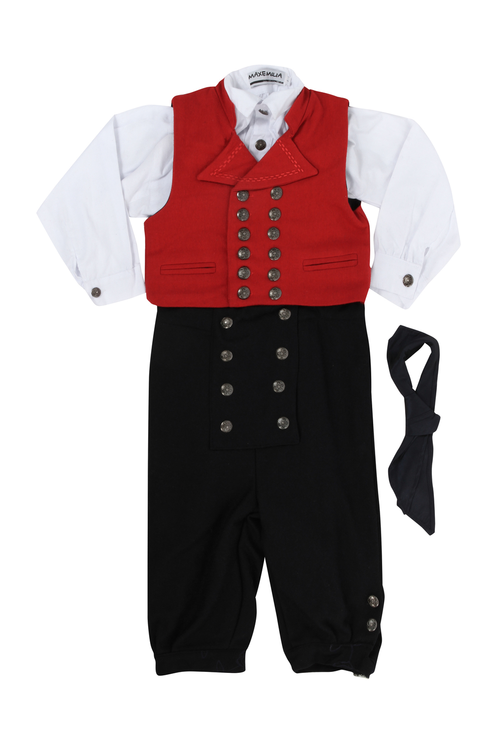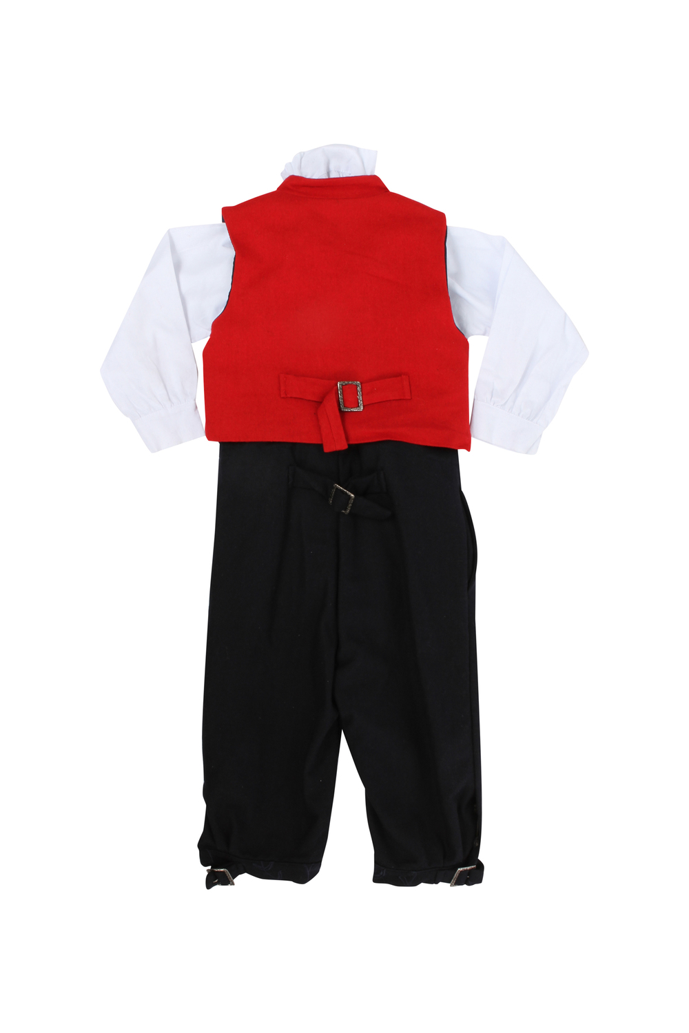 Tradisjonell barnefestdrakt til gutt. Drakt med mange fine detaljer og flott bomull skjorte følger med. Nikkers. Rød ullvest med fine knapper. Slang modell, rundt opp...Tradisjonell barnefestdrakt til gutt. Drakt med mange fine detaljer og flott bomull skjorte følger med. Nikkers. Rød ullvest med fine knapper. Slang modell, rundt opp om du er i tvil om størrelse.Les mer