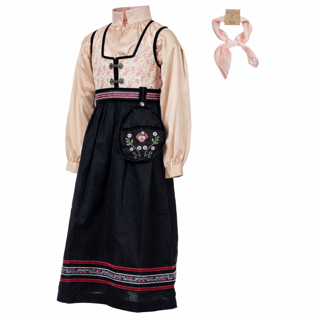 Festdrakt, "silke" skjorte, veske og skjerf. Alt du trenger for et perfekt antrekk. Nydelig festdrakt i 80% polyester og 20% bomull med skjorte i 100%...Festdrakt, "silke" skjorte, veske og skjerf. Alt du trenger for et perfekt antrekk. Nydelig festdrakt i 80% polyester og 20% bomull med skjorte i 100% polyester. Vaskes lett på 30 grader. Normal størrelse på drakt.Les mer