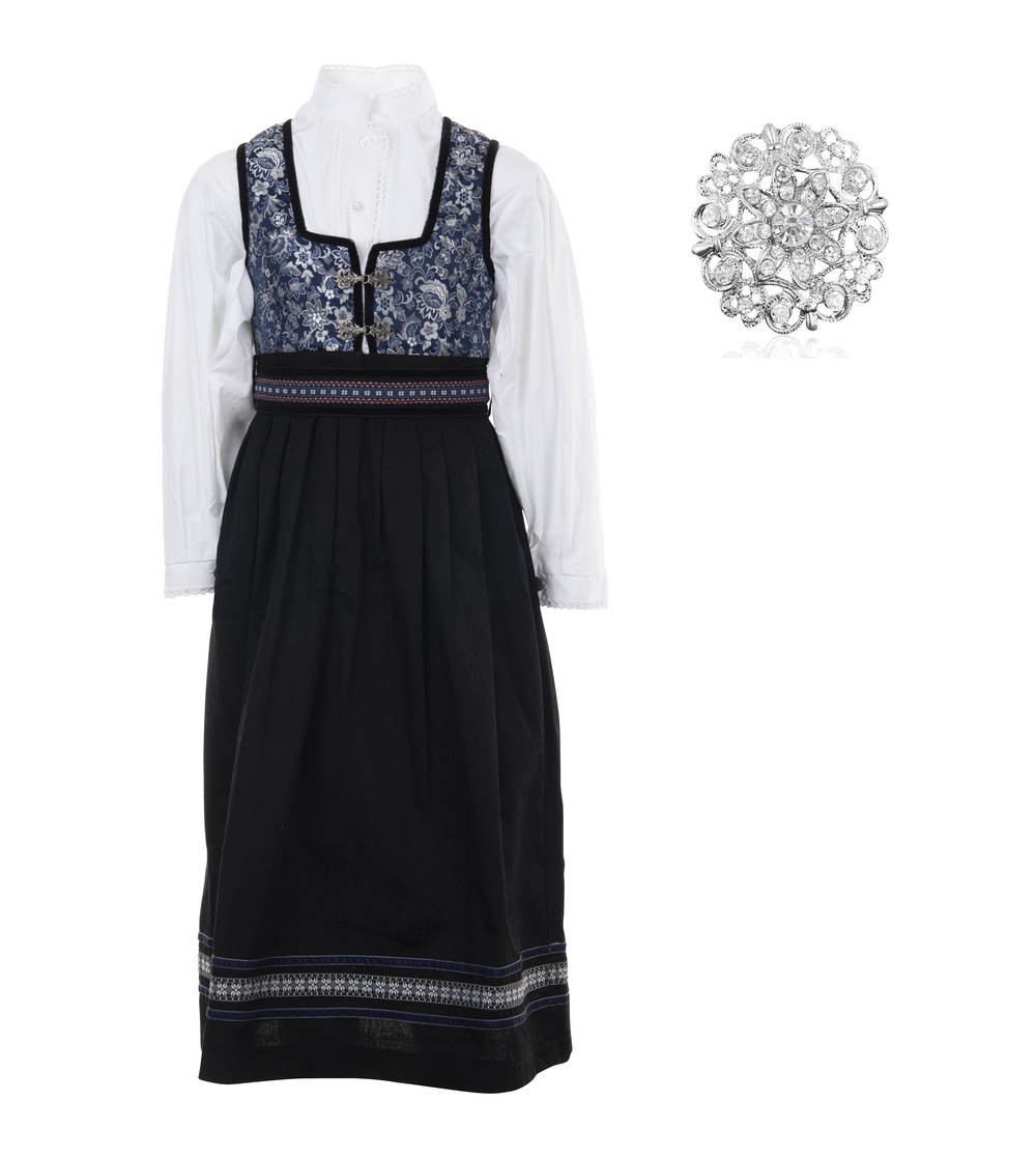 Festdrakt, skjorte og sølje. Nydelig festdrakt i 80% polyester og 20% bomull med skjorte i 100% bomull. Vaskes lett på 30 grader. Nydelig brosje følger... Les mer