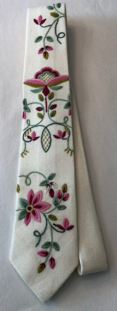 Nydelig håndbrodert bunadslips i ull. Broderiene er håndbrodert med mønster fra Lundebybunaden.