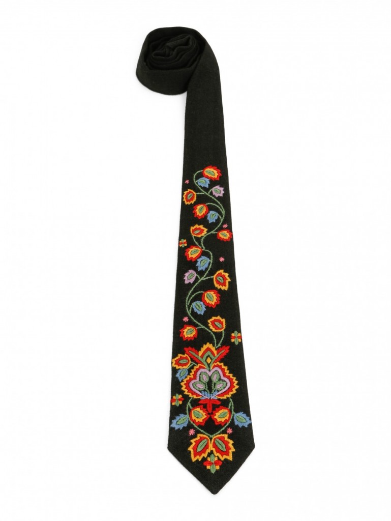 Nydelig håndbrodert bunadslips i ull. Broderiene er håndbrodert med mønster fra Gamle Valdresbunaden.