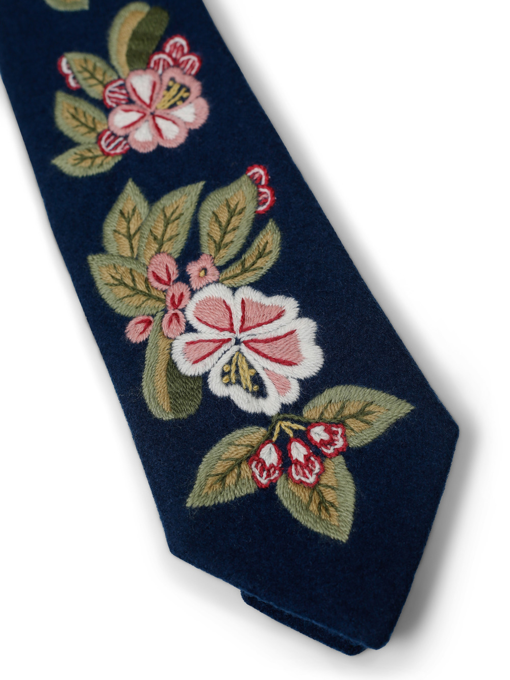 Nydelig håndbrodert bunadslips i ull. Broderiene er håndbrodert med mønster fra Lierbunaden.