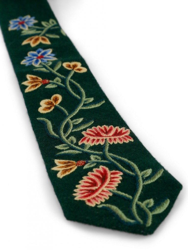 Nydelig håndbrodert bunadslips i ull. Broderiene er håndbrodert med mønster fra Nordlandsbunaden.