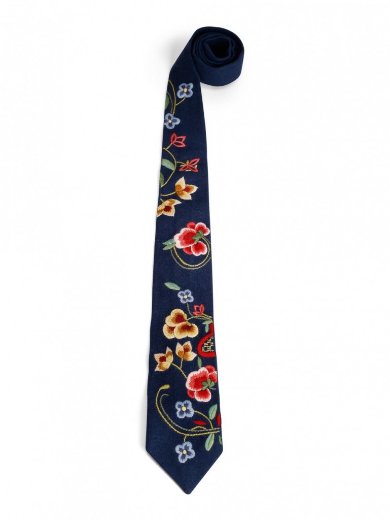 Nydelig håndbrodert bunadslips i ull. Broderiene er håndbrodert med mønster fra Gudbrandsdalenbunaden.