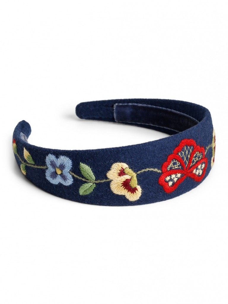 Svart hårbøyle til Gudbrandsdalenbunad. Håndbrodert i ullstoff.