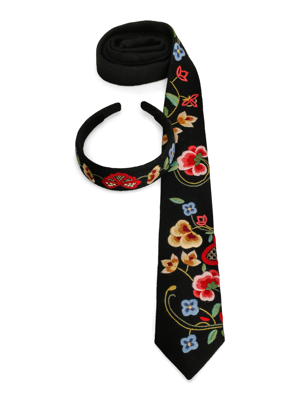 Svart hårbøyle til Gudbrandsdalenbunad. Håndbrodert i ullstoff.