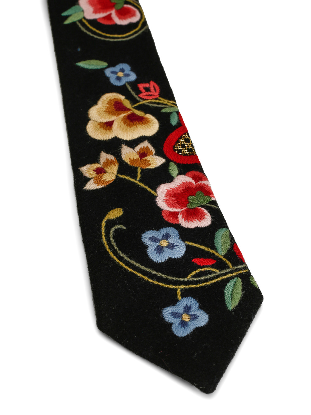 Nydelig håndbrodert bunadslips i ull. Broderiene er håndbrodert med mønster fra Gudbrandsdalenbunaden.