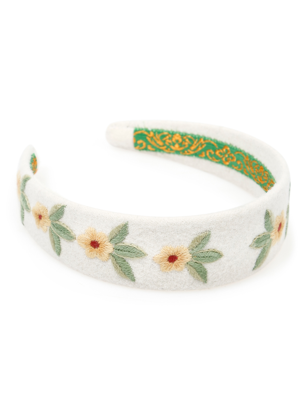 Blå hårbøyle til Løkenbunad. Håndbrodert i ullstoff.