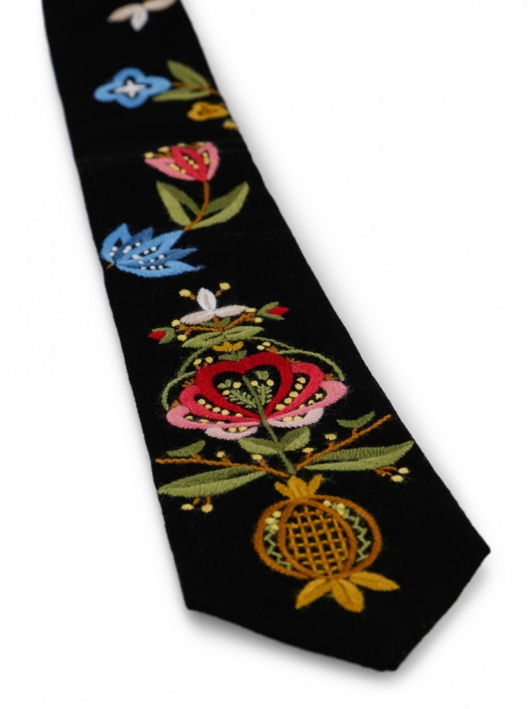 Nydelig håndbrodert bunadslips i ull. Broderiene er håndbrodert med mønster fra Rogaland Jelsa.