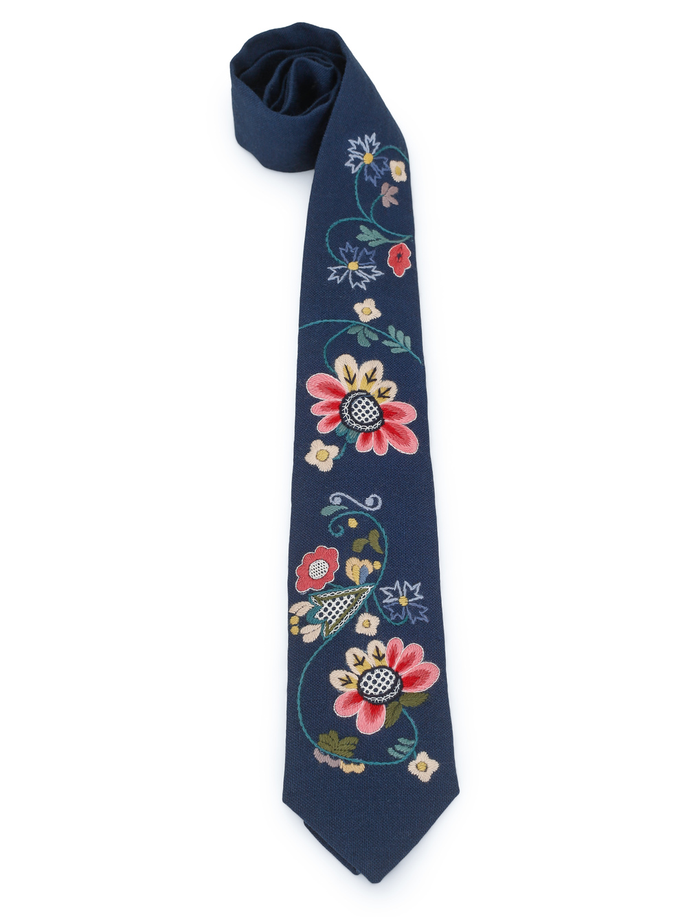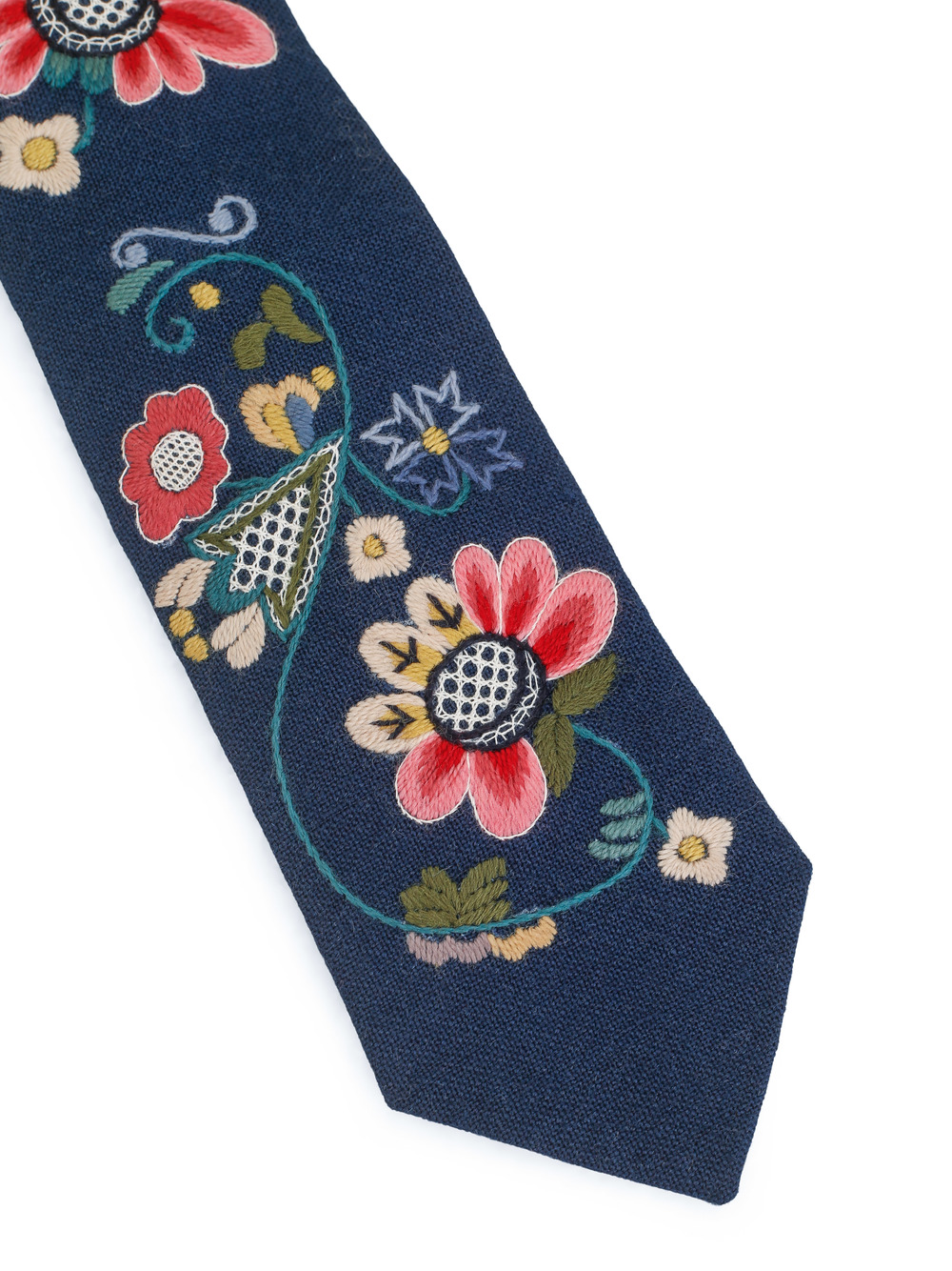 Nydelig håndbrodert bunadslips i ull. Broderiene er håndbrodert med mønster fra Romsdalbunaden.