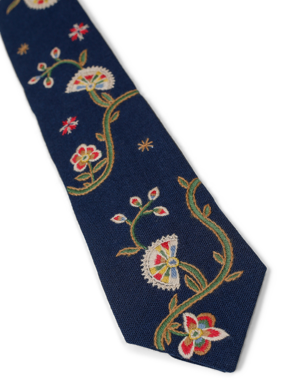 Nydelig håndbrodert bunadslips i ull. Broderiene er håndbrodert med mønster fra Vest-Opplandbunaden.