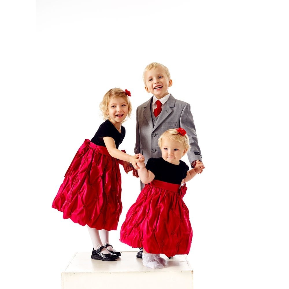 Pascal nydelig rød julekjole med mange flotte detaljer. Silkeskjørt og svart fløyel overdel.