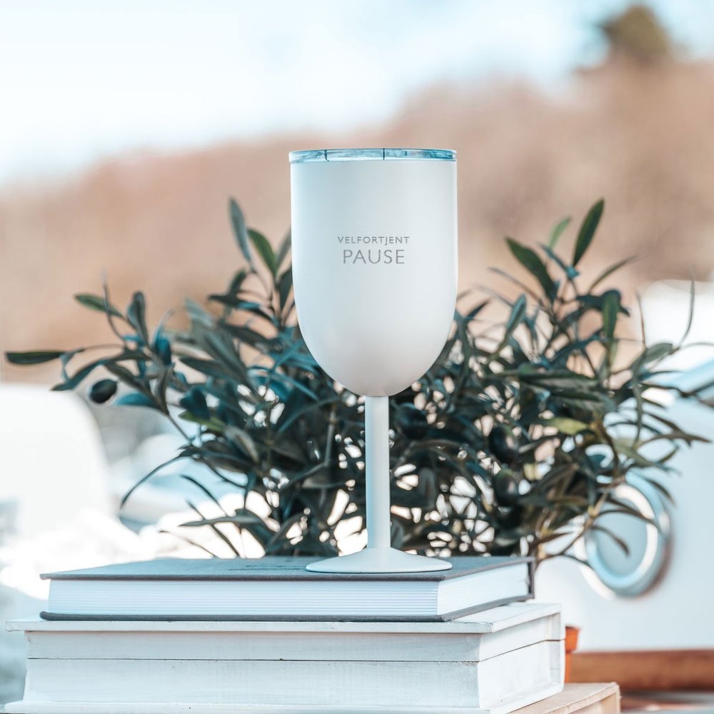 Med et VELFORTJENT PAUSE – termo-vinglass holder drikken seg kald. I tillegg slipper du insekter som lurer seg ned i drikken din, siden koppen kommer med praktisk lokk m/lukkemekanisme. Glasset er laget av rustfritt stål med dobbeltisolerte vegger. VELFORTJENT PAUSE – termo-vingass har en matt hvit farge. Teksten er lasergravert og sølvfarget.