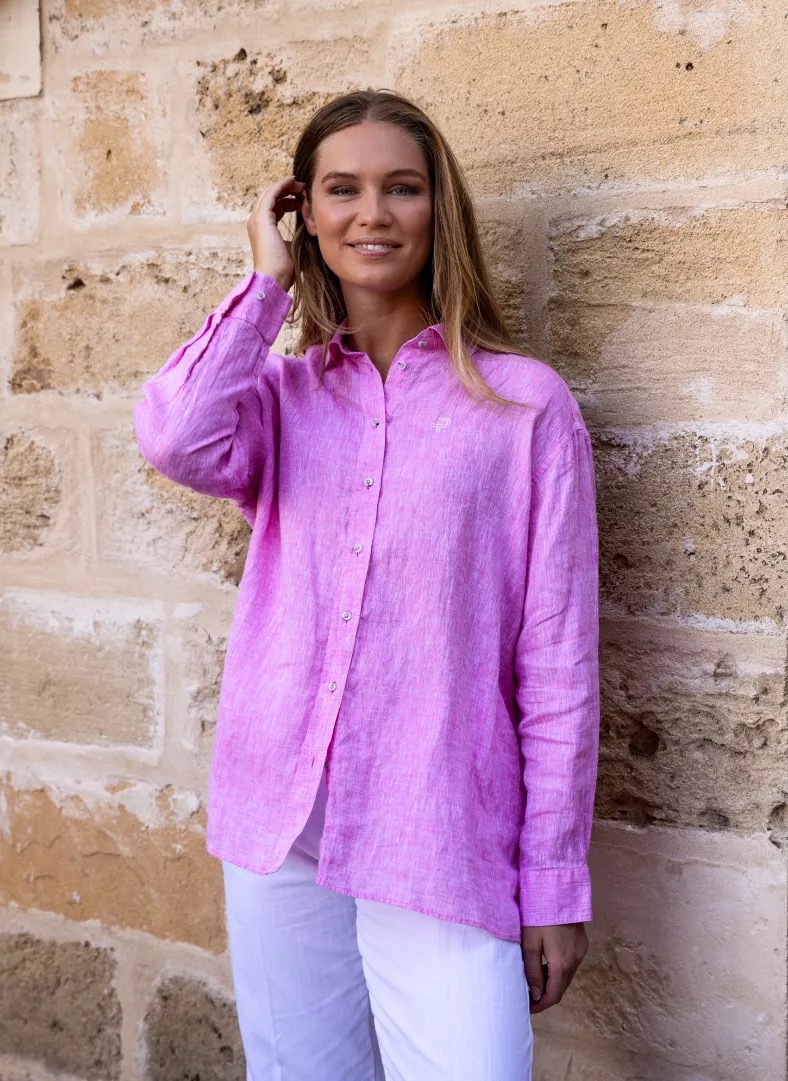 Linen Breeze-skjorten til Pelle P er laget av et mykt, luftig stoff laget av 100 % lin. Den oversized skjorten har en petite krage og...Linen Breeze-skjorten til Pelle P er laget av et mykt, luftig stoff laget av 100 % lin. Den oversized skjorten har en petite krage og fungerer like godt med et par jeans på kontoret som med et par shorts i havnen.