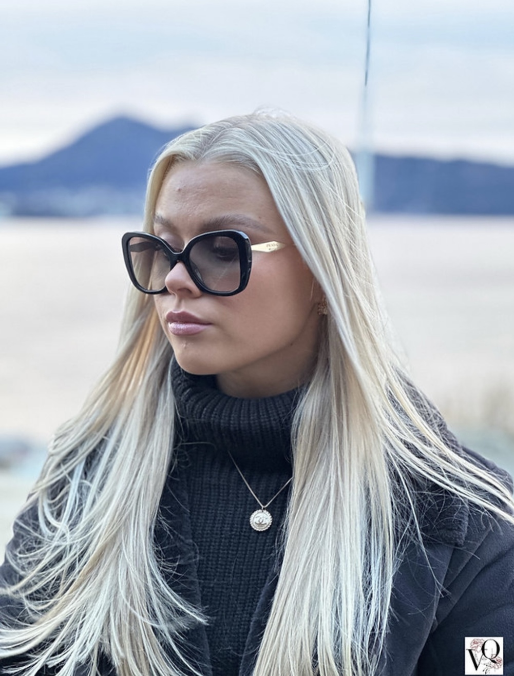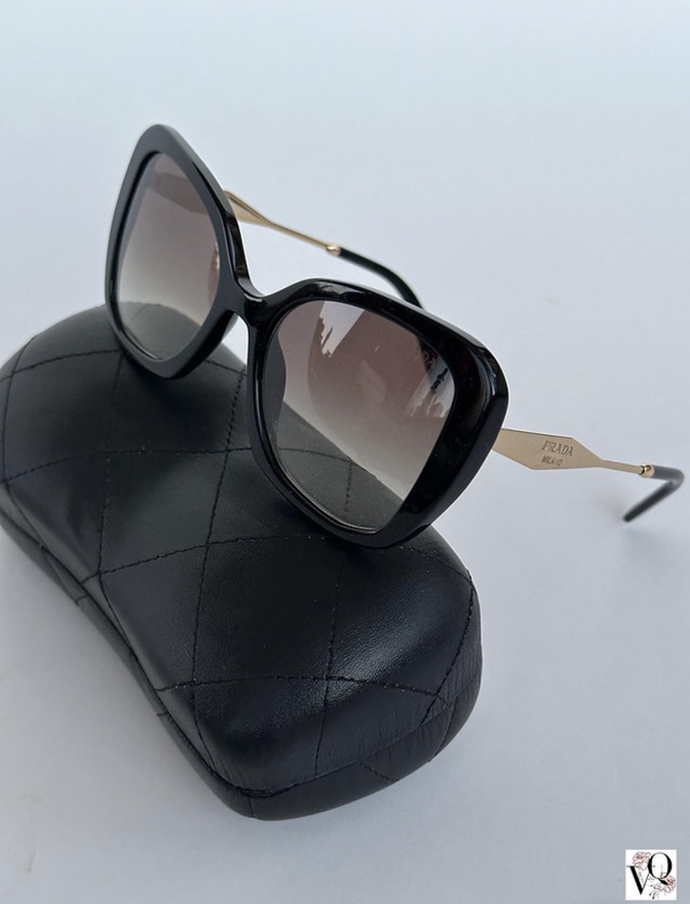 De...Prada Solbriller SPR03Y i svart og gull detaljer med Prada på begge sider.