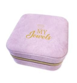 Søte reisesmykkeskrin fra Tinka Beauty. Ta med deg smykkeskrinet på reise. Nydelig myk velour med gulltrykk. 10,3 x 10,3 x 4,6 cm