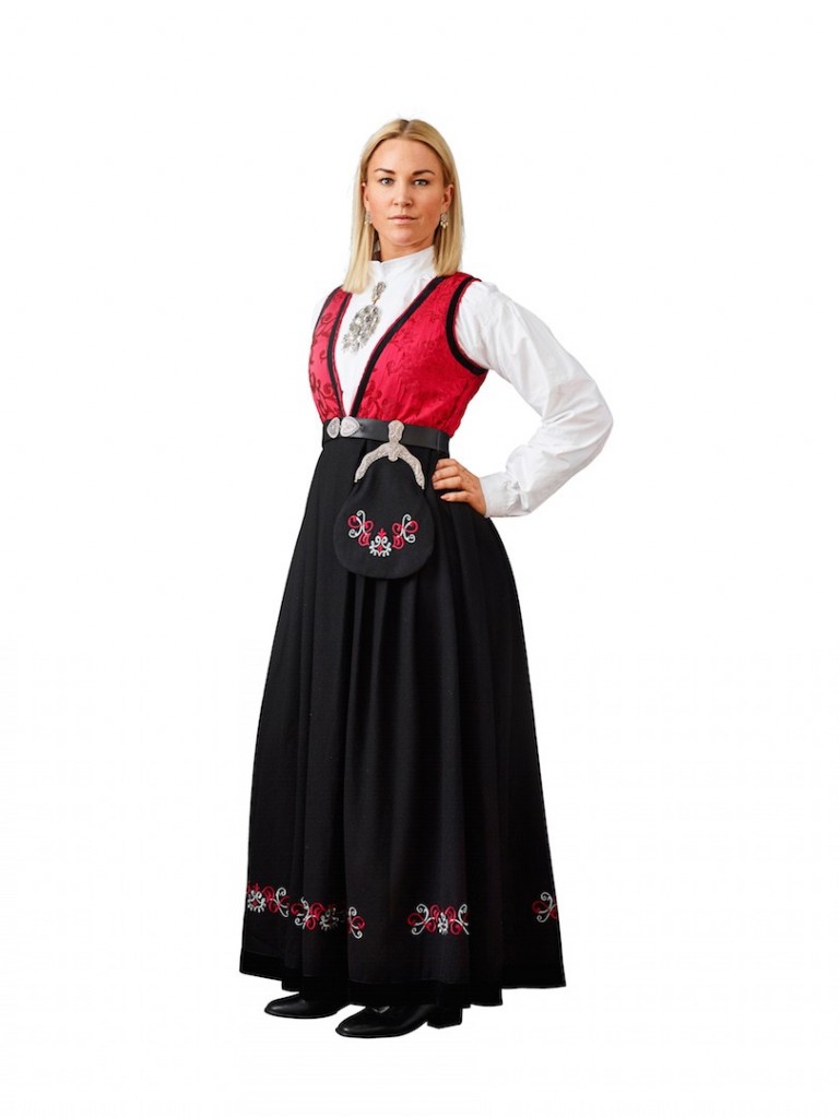 Denne festdrakten passer til damer i alle aldre men også til konfirmater. Str. 36 er en fin konfirmatstørrelse da denne passer til jenter mellom 160-170 cm høy.