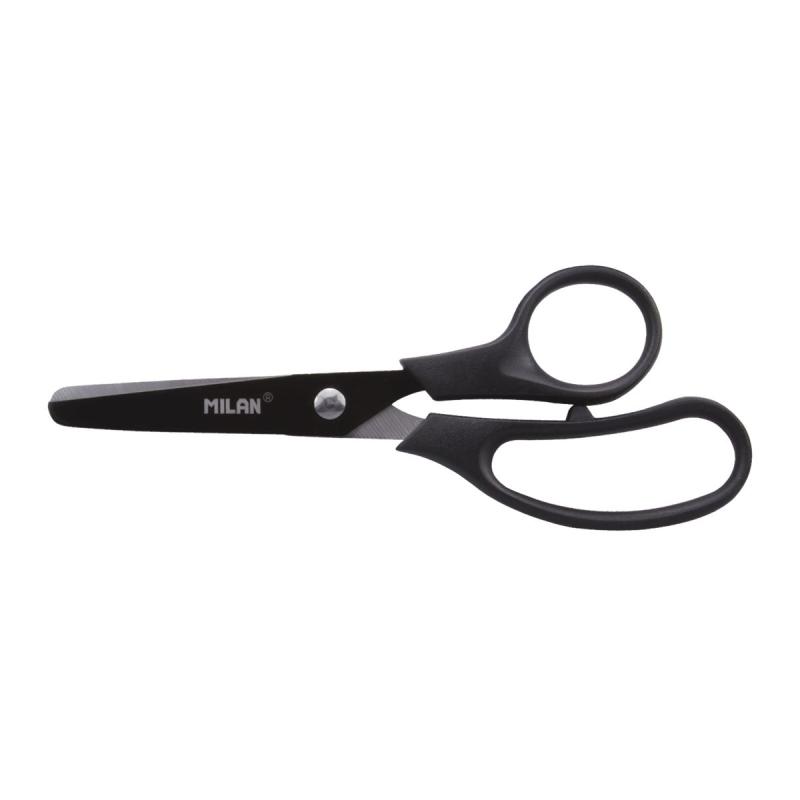 Saks med bladet i samme farge som håndtaket. Blad i rustfritt stål og avrundet spiss.