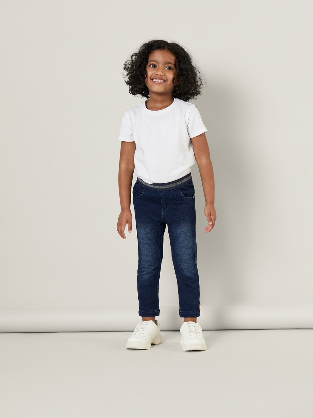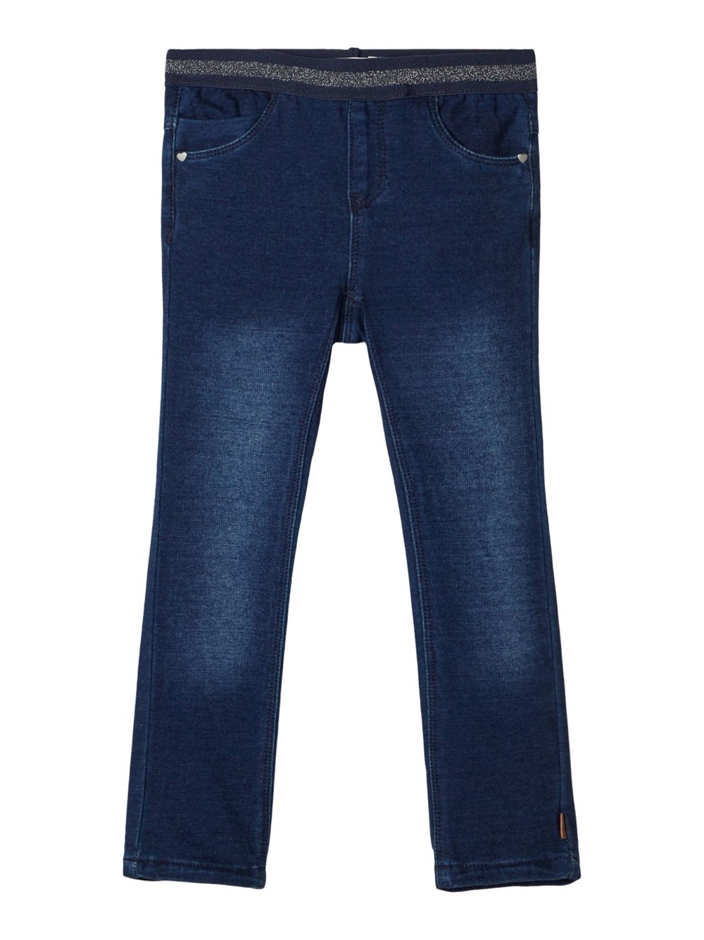 Leggings nmfSalli dnmTorina 3246 Swe Legging fra Name it i myk stretchtrikot av økologisk bomull. Strikklinning med glitterstripe. Fuskelommer foran og to baklommer.