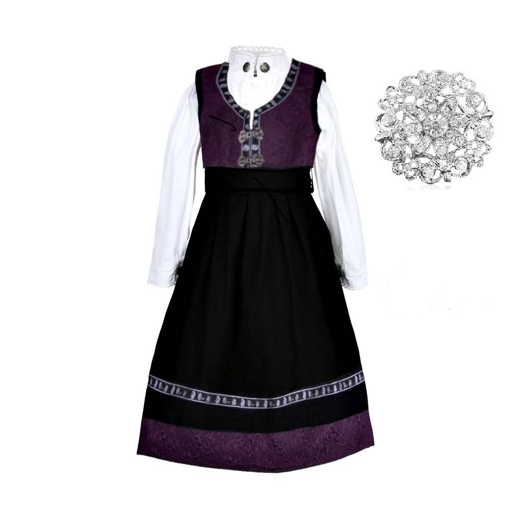 Festdrakt, skjorte og sølje. Nydelig festdrakt i 80% polyester og 20% bomull med skjorte i 100% bomull. Vaskes lett på 30 grader. Nydelig brosje følger...Festdrakt, skjorte og sølje. Nydelig festdrakt i 80% polyester og 20% bomull med skjorte i 100% bomull. Vaskes lett på 30 grader. Nydelig brosje følger med! Normal størrelse på drakt. Veske følger ikke med.Les mer