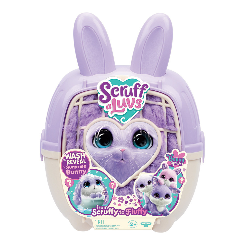 Scruff‑a‑Luvs Bunnies lar barn redde en liten, pjusket pelsklump og avsløre hvilken søt lilla kanin som skjuler seg inni. Gjennom vask, tørk og pleie forvandles...Scruff‑a‑Luvs Bunnies lar barn redde en liten, pjusket pelsklump og avsløre hvilken søt lilla kanin som skjuler seg inni. Gjennom vask, tørk og pleie forvandles den sammenfiltrede bunten til en myk og kosete kaninvenn, klar for styling, tilbehør og lek. Hver kanin kommer med børste, halsbånd, hårspenne og adopsjonsbevis, samt en liten transportboks som gjør det enkelt å ta den nye vennen med overalt. Det finnes tre ulike lilla kaniner å oppdage, noe som gjør samlingen ekstra spennende.