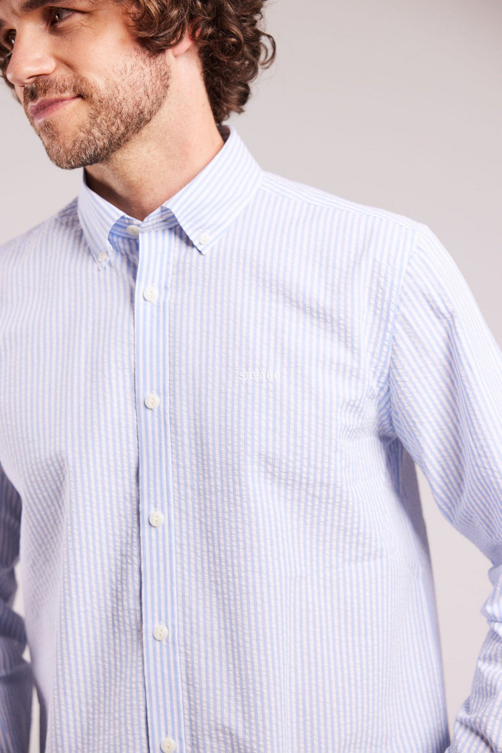 Seersucker BD Skjorte Lyseblå.Klassisk seersucker-skjorte med normal passform. Krage med knapper.
