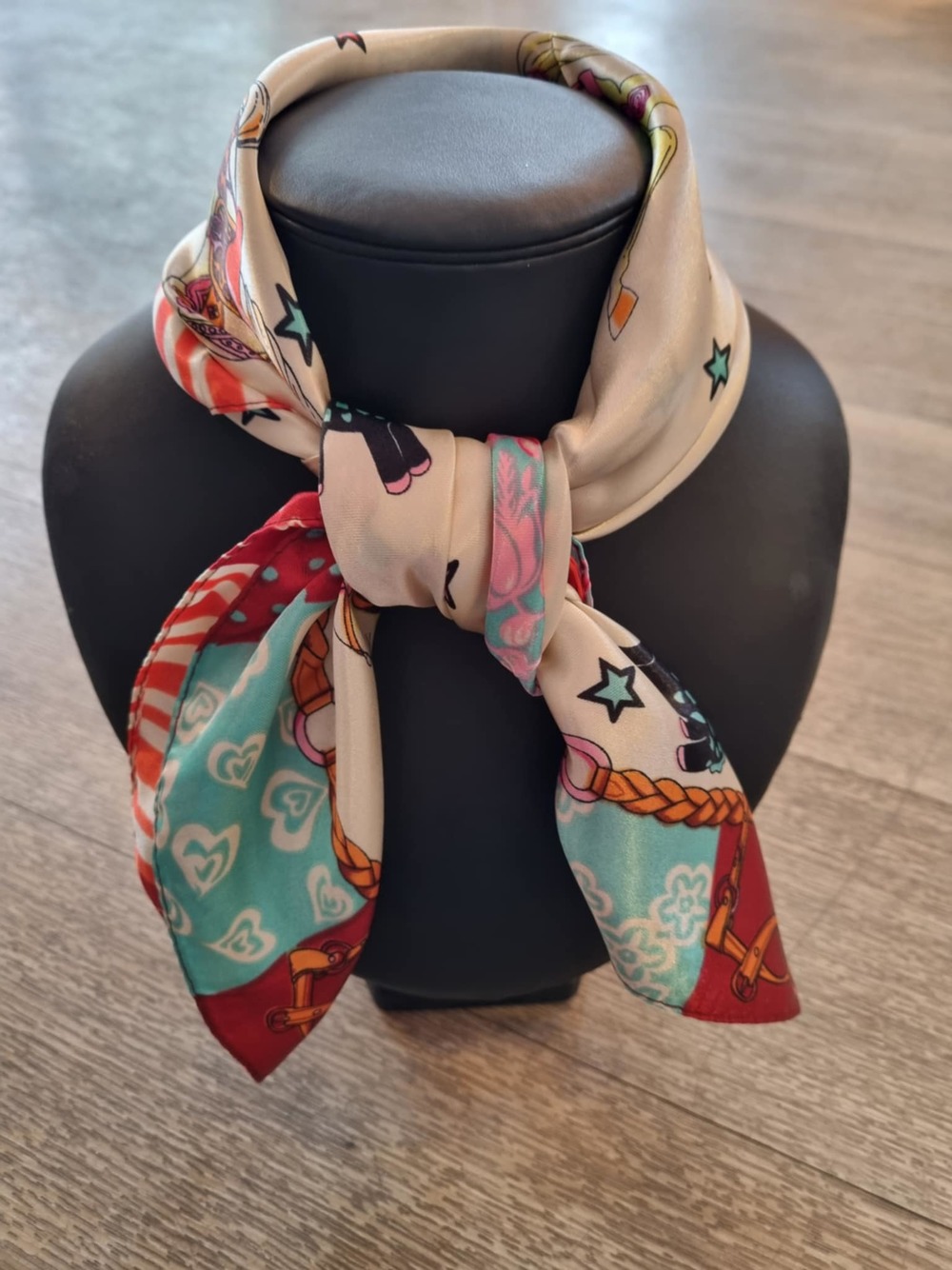 Silkeskjerf i mange farger og mønster. Fint tilbehør til både barne og dame festdrakt og bunad. Kjempefin til hverdag og fest. 60x60 cm Polyester/Satin.
