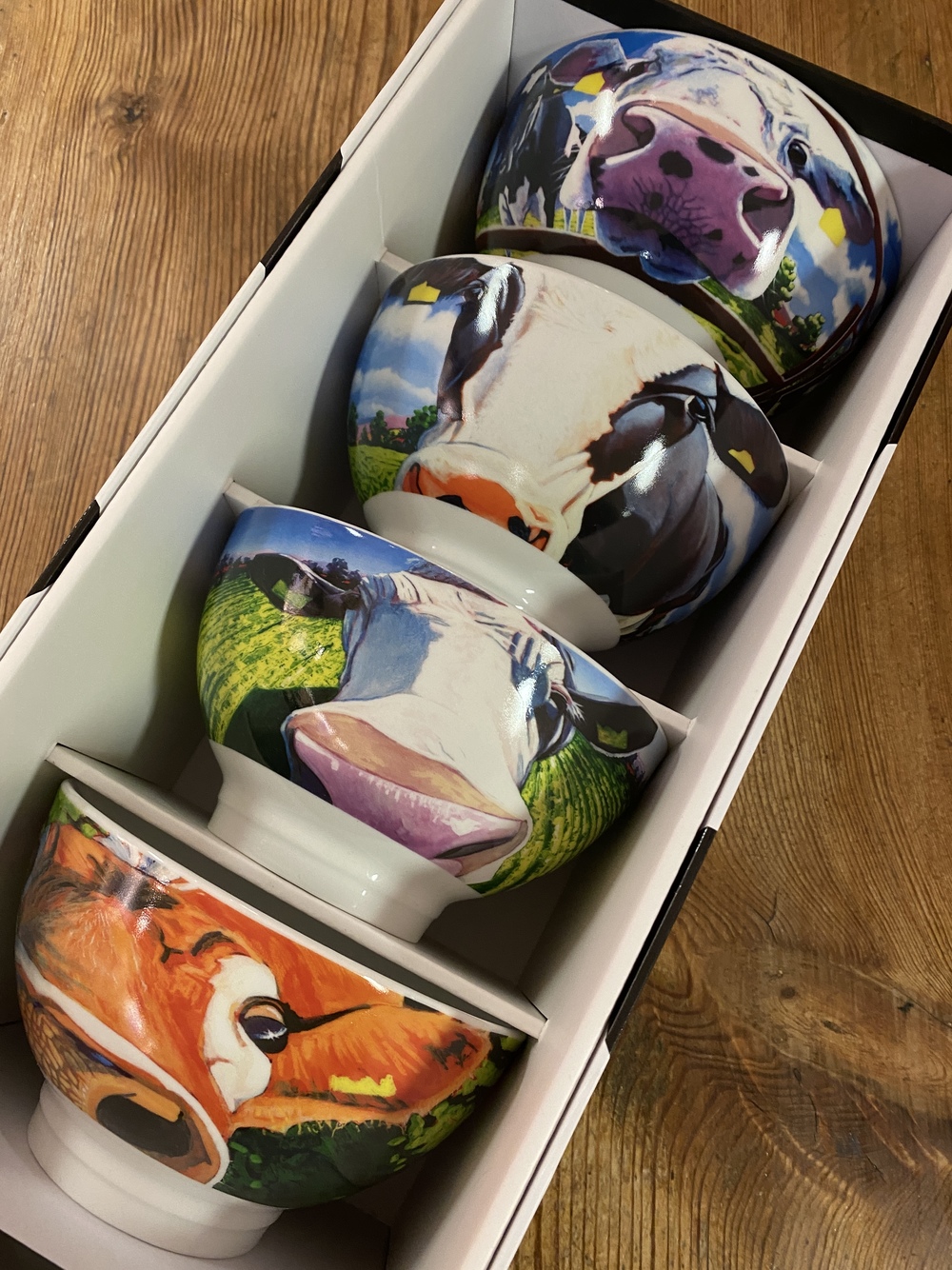 Skåler fra Tipperary Crystal med ku-motiv, designet av Eoin O'Connor. I dette sette er det fire ulike motiv; "Breaking Boundaries", "The Moovers & Shakers", "Reach...Skåler fra Tipperary Crystal med ku-motiv, designet av Eoin O'Connor. I dette sette er det fire ulike motiv; "Breaking Boundaries", "The Moovers & Shakers", "Reach for the Stars" og "Valerie"