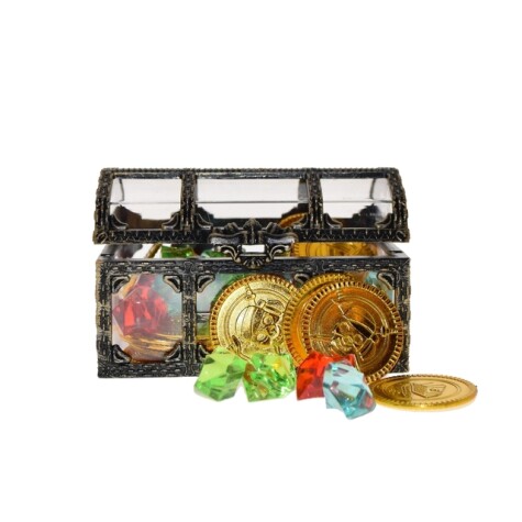 Hvem ville ikke elske en skattekiste fylt med gull og diamanter? Denne fine skattekisten inneholder 30 skinnende gullmynter og 20 glitrende diamanter som du kan...Hvem ville ikke elske en skattekiste fylt med gull og diamanter? Denne fine skattekisten inneholder 30 skinnende gullmynter og 20 glitrende diamanter som du kan leke med. Kisten måler 10,5 x 8 cm Fra 3 år.Les mer