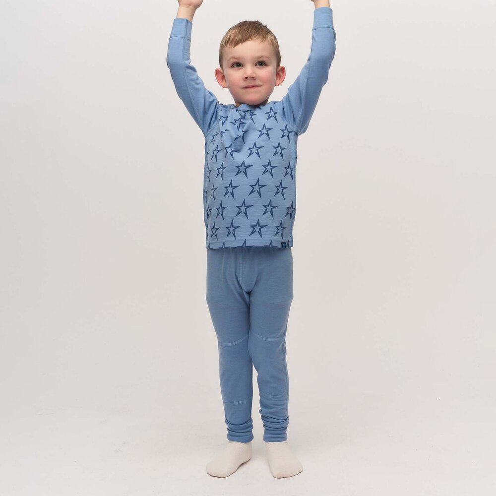 Loppa merinoull trøye og longs til barn er laget av høy kvalitet merinoull, kjent for sine fantastiske egenskaper. Dette settet gir god varme, samtidig som det er lett og pustende.