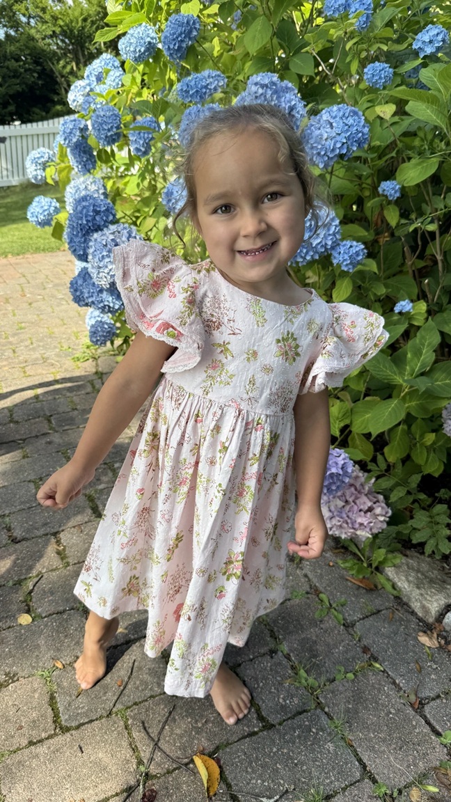 Nydelig blomstret kjole med mange detaljer og liten åpning på rygg. Passer til selskap, bursdager og fine sommerdager. Korte armer med blondekant. 100% bomull som...Nydelig blomstret kjole med mange detaljer og liten åpning på rygg. Passer til selskap, bursdager og fine sommerdager. Korte armer med blondekant. 100% bomull som vaskes på 40 grader.Les mer