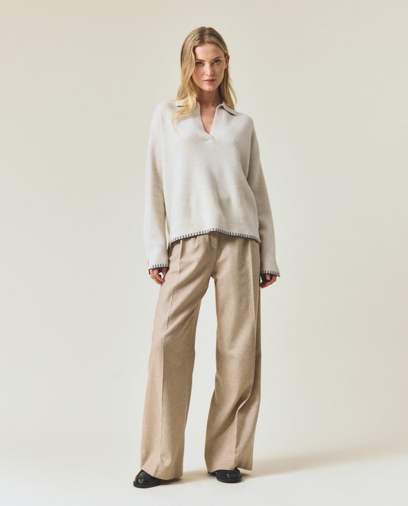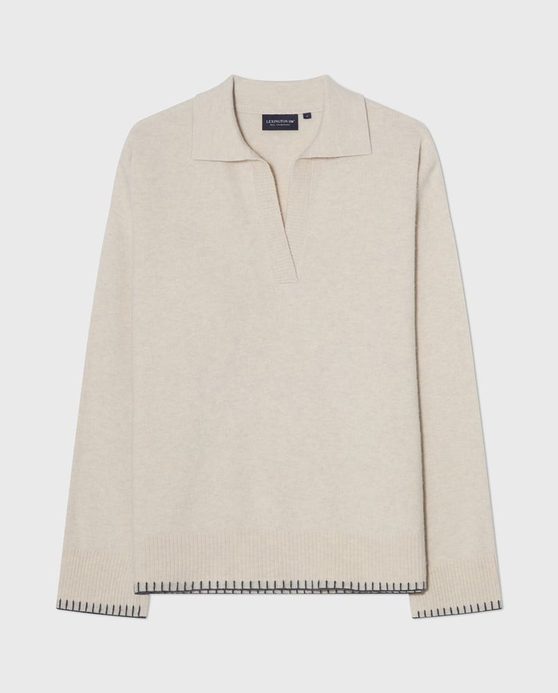 Lexingtons premium Merino Wool Knitted Polo Sweater tilbyr eksepsjonell komfort og tidløs stil for de kjøligere årstidene. Laget av 100% extra fine merinoull, har denne genseren en klassisk poloskjortekrage, senket skulder og karakteristisk kontrasterende teppesøm som gir et sofistikert preg. Detaljene med 2x2 ribbestrikk ved knepping, krage, ermer og nederkant gir struktur samtidig som den beholder en avslappet, casual passform. Side- og ermesplitter gir økt bevegelsesfrihet, noe som gjør dette allsidige plagget perfekt for både avslappede helger og smart-casual anledninger.