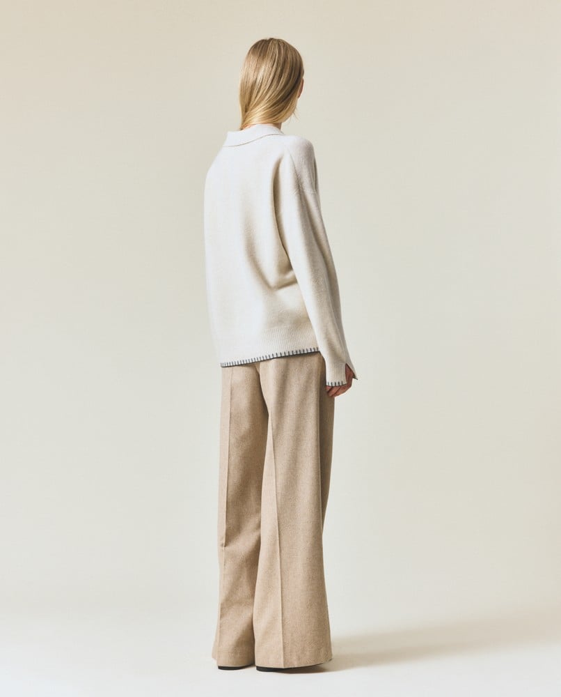 • Kontrasterende teppesøm ved ermer, nederkant og splitter