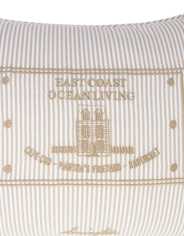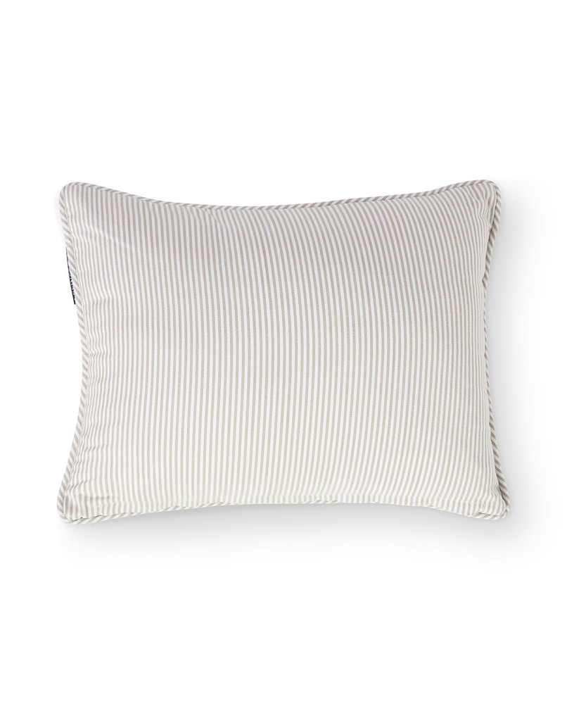 Den klassiske Lexington beige og hvite stripete pynteputen bringer tidløs eleganse til hjemmet ditt med sin myke økologiske bomull i oxfordvev og originalt garnfarget stripemønster....Den klassiske Lexington beige og hvite stripete pynteputen bringer tidløs eleganse til hjemmet ditt med sin myke økologiske bomull i oxfordvev og originalt garnfarget stripemønster. Den broderte logoen foran og den fine kantbånden i samme stoff tilfører raffinerte detaljer, mens den skjulte fargetilpassede glidelåsen sikrer et sømløst utseende. Produsert i en sertifisert grønn fabrikk og Oeko-tex-sertifisert, reflekterer denne puten forpliktelse til bærekraft og kvalitet.