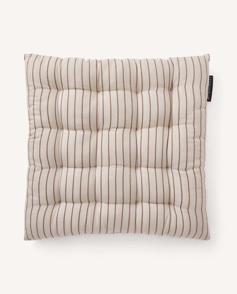 Vår stripete sittepute gjør det enkelt å tilføre en klassisk stil og myke opp spiseplassens estetikk for en umiddelbar oppfriskning. Den er laget av vår fineste 100 % bomull og fylt med resirkulert polyester for et miljøvennlig preg, og de beige og brune stripene passer til en rekke innredningsstiler og farger. Vi elsker hvor enkelt det er å tilføre litt ekstra komfort til en stol eller et treverk, eller hvor dyktig det skjuler slitasje som kommer med tiden.Les mer