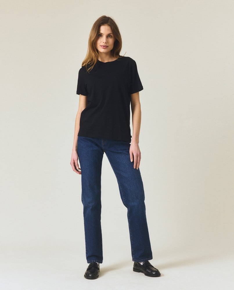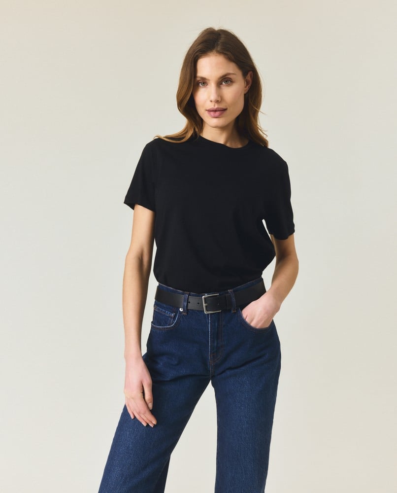 Oppgrader garderoben din til hverdags med Lexingtons Cotton-modal Blend Casual Tee. Denne allsidige svarte t-skjorten kombinerer pustende bomull med luksuriøs mykhet fra modal for eksepsjonell komfort gjennom hele dagen. Den klassiske runde halsen med 1x1 ribbing gir en raffinert finish, mens den karakteristiske Lexington-flaggetiketten i sidesømmen tilfører et subtilt preg av sofistikert stil. Den casual passformen sikrer en avslappet silhuett som er perfekt både for lagdelt styling eller for å brukes alene. Kombiner den med favorittjeansen din for et tidløst casual antrekk, eller kle den opp med dressbukser for et mer polert ensemble.