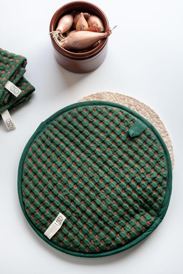 Kvaliteten har en struktur som minner om vafler - derav navnet Materialet er vevd med 2 forskjellige trådfarger som gir stoffet to fargehistorier avhengig av hvilken side man ser. Produktene er vasket av produsenten. Det fremhever vaffelstrukturen.