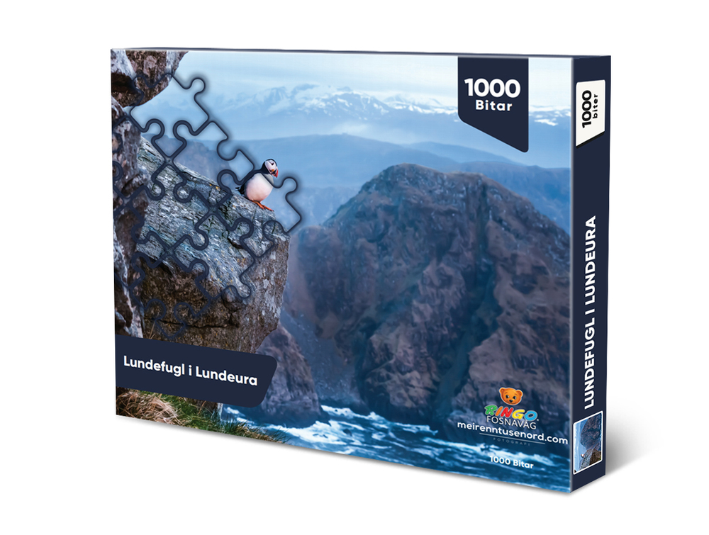 Lokalt puslespel - Lundefugl i Lundeura, 1000 bitar. Motiv av Kristoffer Ytterland. Spesialproduserte, og derfor kun å få kjøpt hos oss. Størrelse ferdiglagt ca 70x50...Lokalt puslespel - Lundefugl i Lundeura, 1000 bitar. Motiv av Kristoffer Ytterland. Spesialproduserte, og derfor kun å få kjøpt hos oss. Størrelse ferdiglagt ca 70x50 cm.
