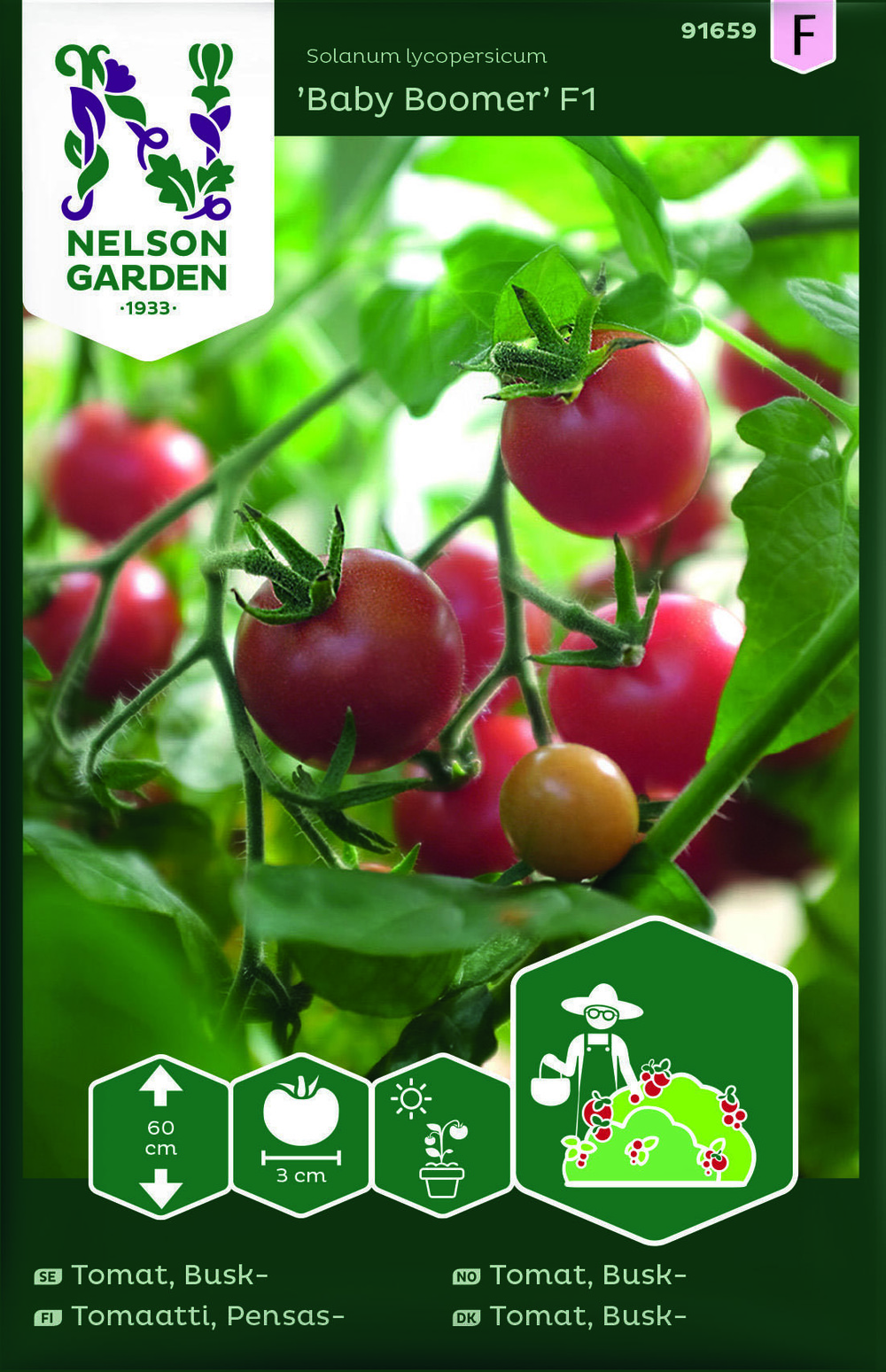 Busktomaten 'Baby Boomer' F1 produserer mange, over 300, velsmakende saftige og røde cherrytomater i løpet av en sesong. Planten blir 60 centimeter høy og omtrent...Busktomaten 'Baby Boomer' F1 produserer mange, over 300, velsmakende saftige og røde cherrytomater i løpet av en sesong. Planten blir 60 centimeter høy og omtrent like bred. Den har en kraftig og sterk vekstmåte. Tomatene kan være små (3 cm i diameter), men de smaker mye.
