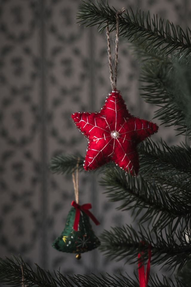 Ullfilt Stjerne Rød m/Sølvdekor
