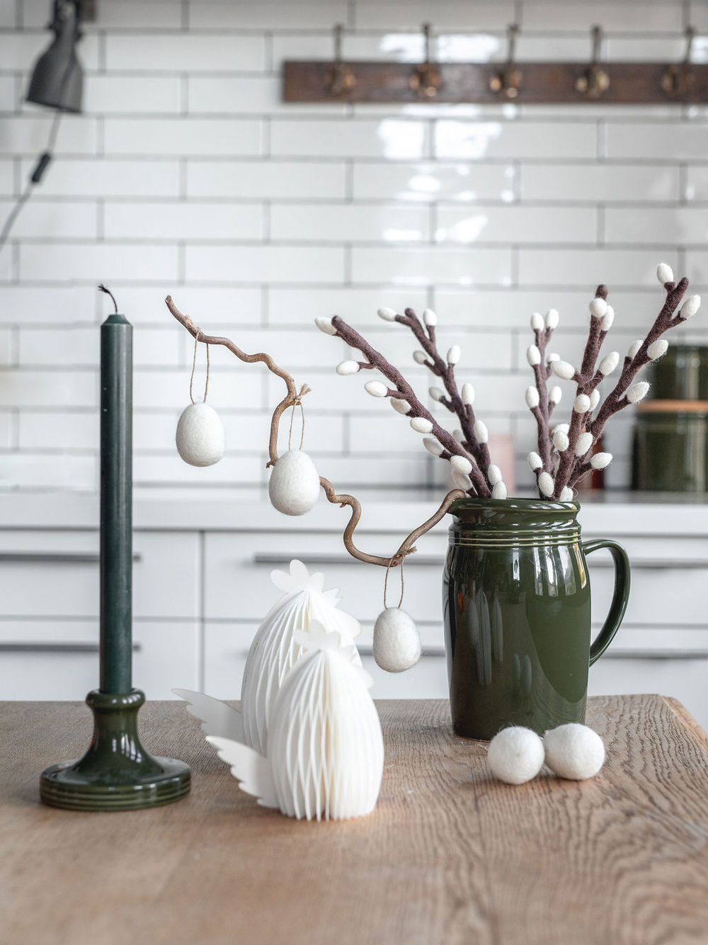 Tovede blomster og grener fra det norske firmaet UND. Grenene kan bøyes og formes slik du ønsker. Ha flere sammen i en vase, eller ha...Tovede blomster og grener fra det norske firmaet UND. Grenene kan bøyes og formes slik du ønsker. Ha flere sammen i en vase, eller ha en alene som et lite kunstverk. Disse kan hentes fram igjen hvert eneste år, eller de kan stå framme hele året igjennom.