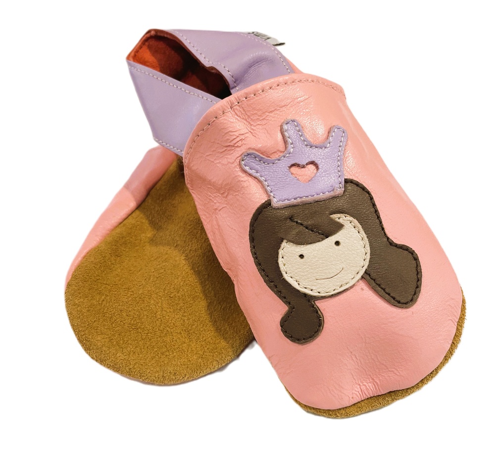 Myke skinntøfler med fine motiv. "sklisikker" såle. Strikk rundt ankel. Kjempefine innesko hjemme og i barnehagen.